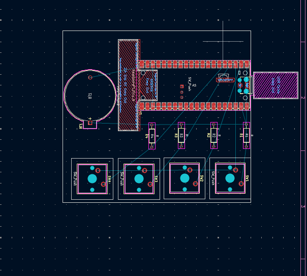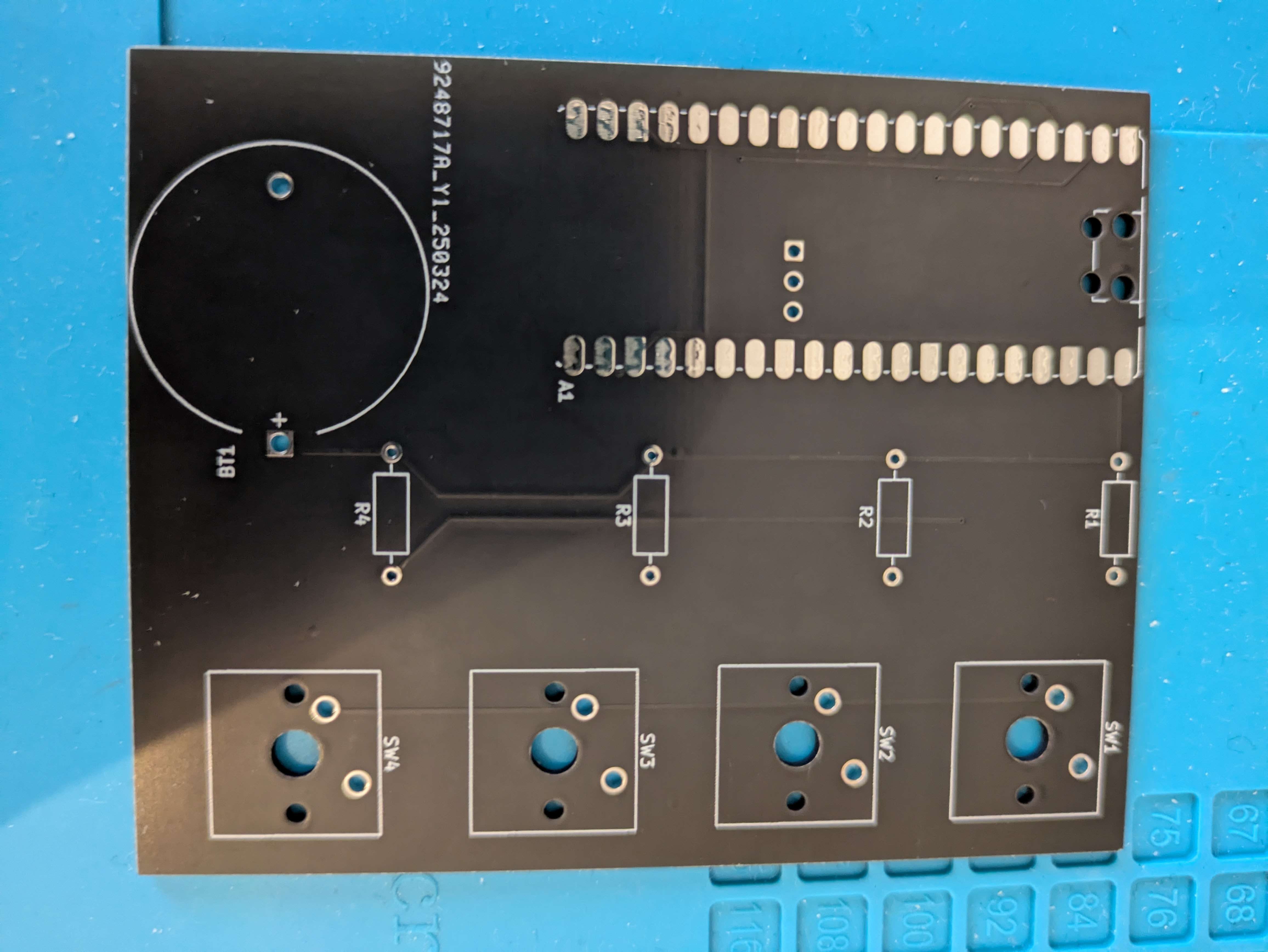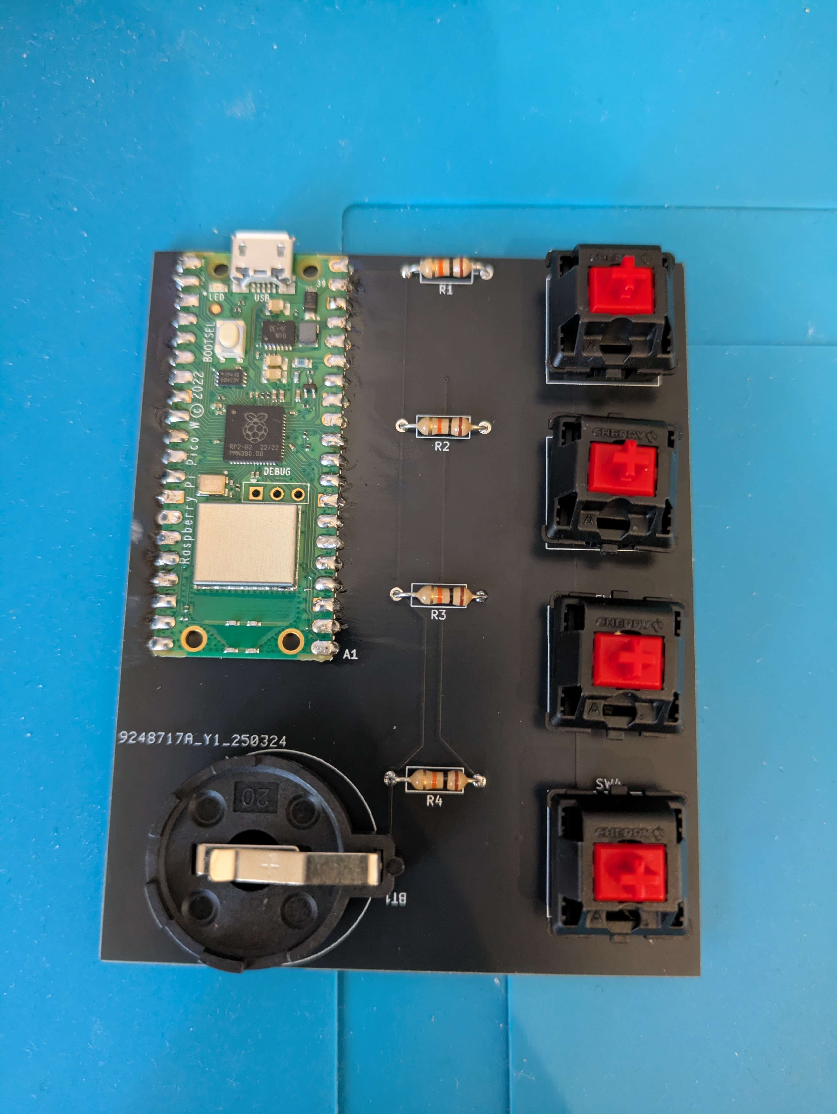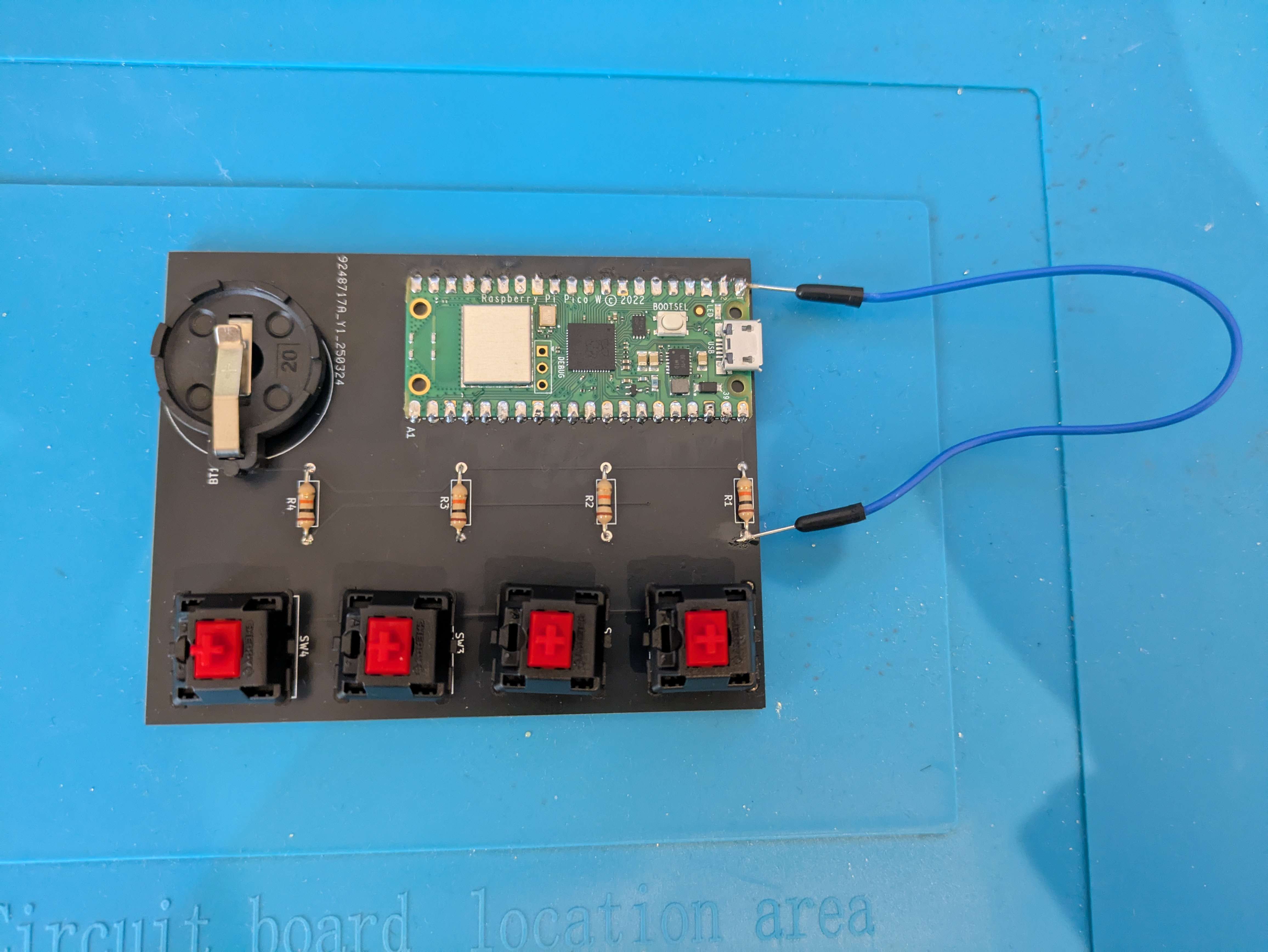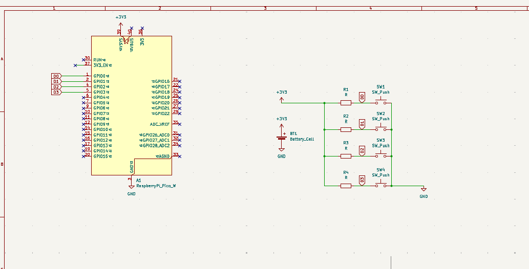 今回は無線機能を搭載したかったのでraspberry pi pico wを使用することにした。また、今回はキーを4つしか使わないのでかなりシンプルな基盤になった。